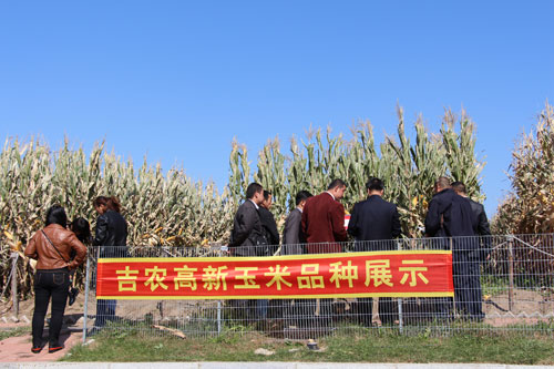 室外的50畝雜交玉米品種種植展區,展示了當前國內種企最前沿、具潛力的優良品種,是此次展會有別于前十屆的一次創舉,成為本次展會的一大特色。展區按品種熟區劃分,我公司展出了吉單50、吉單558、吉單631、吉單441、吉單33、吉單53、吉單27等11個名優新品種,這些品種展現出了優良的綜合性狀。吉林省種子管理總站陳學軍副站長、研究員主講介紹的“室外種植展區品種種植情況報告會”的數據統計報告中,我公司報送的吉單50、吉單441、吉單631、吉單53、吉單558、吉單27更是以優異的綜合表現,在全種植區170余份展示品種中,成為38個綜合性狀最優秀豐產性最好的品種之一。