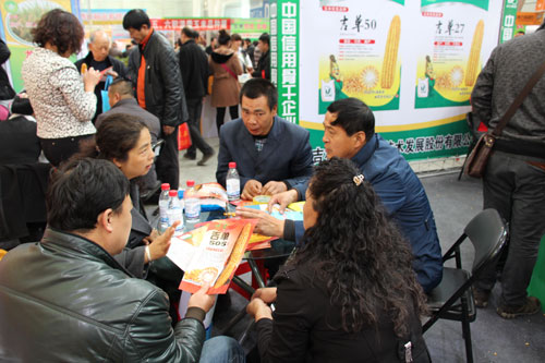 展會上,公司重點展示了吉單513、吉單502、吉單53、吉單27、吉單441、吉單50、吉單558、吉單505等十余個品種及實物樣品,均受到經(jīng)銷商和農(nóng)民朋友的高度關(guān)注。通過展會的連續(xù)宣傳,中國“馳名商標(biāo)”“吉農(nóng)高新”牌玉米良種已在黑土地上廣為流傳。在種業(yè)林立的展會上獨樹一幟,取得了良好的展示效果。